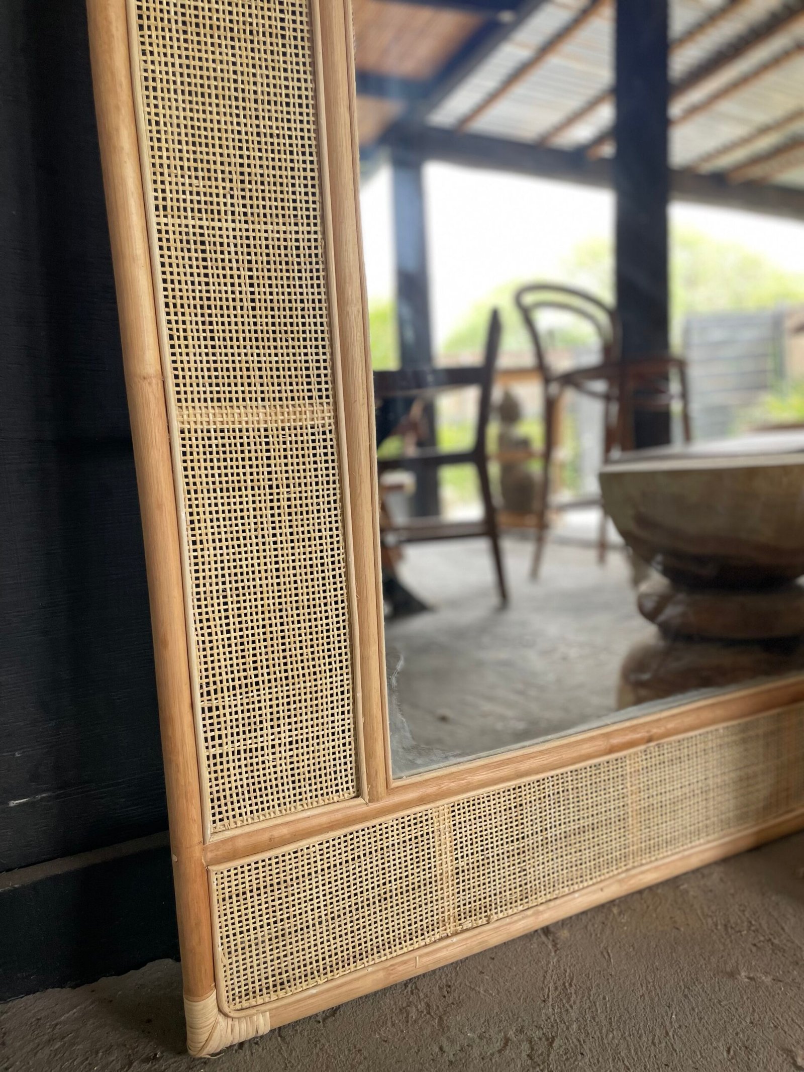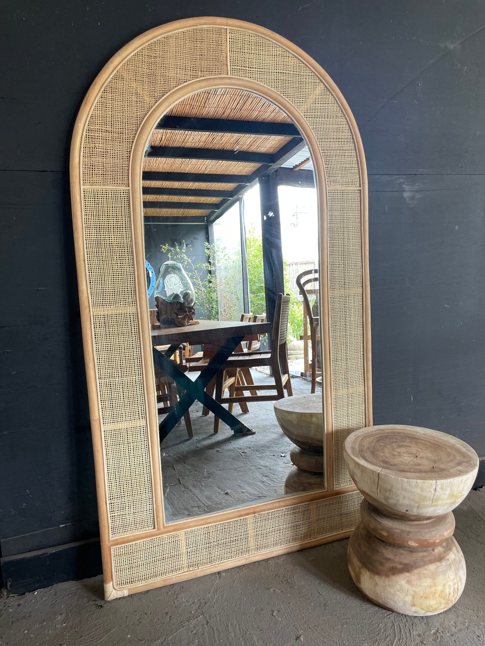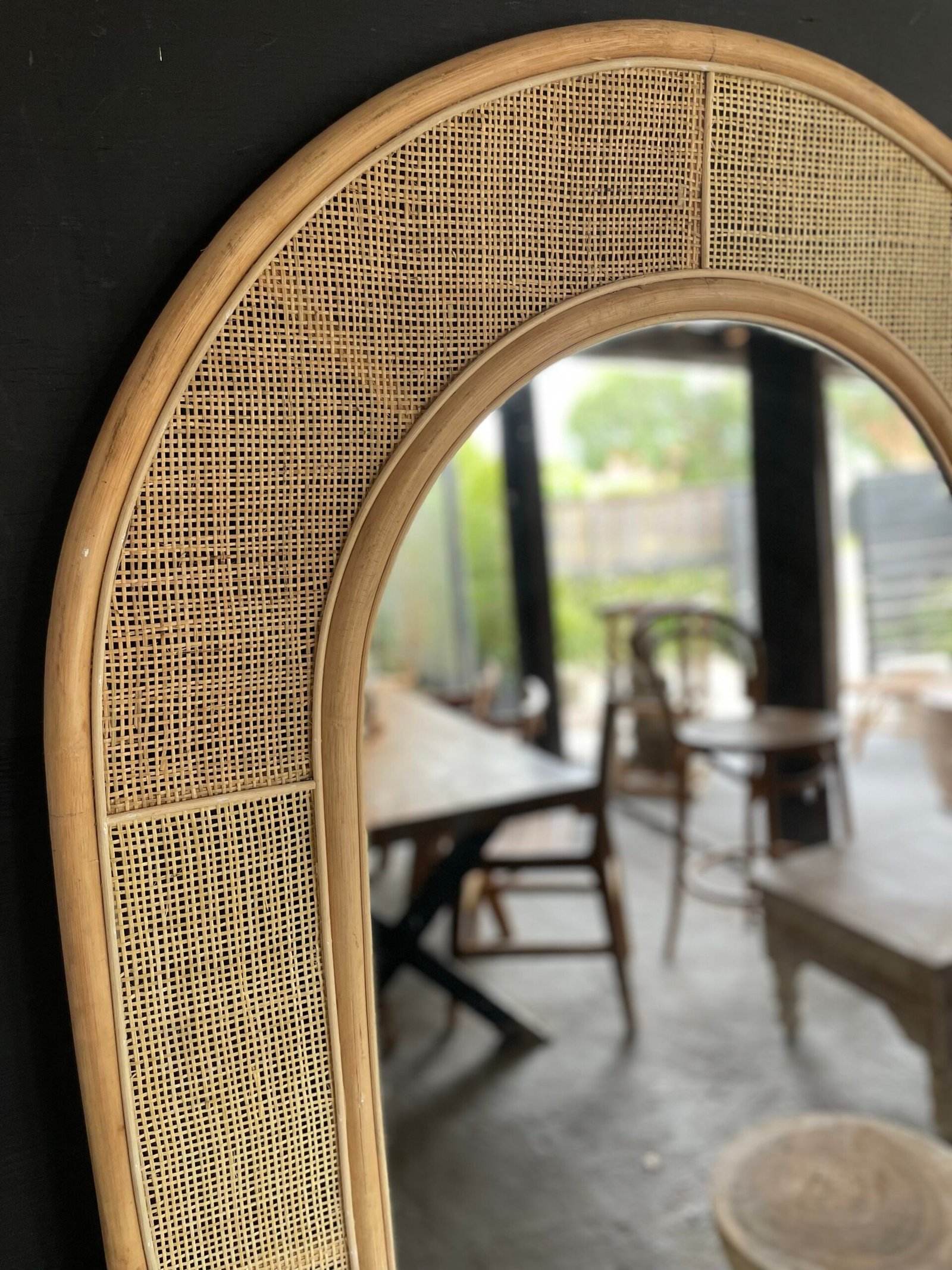 Espejo de ratán parte superior en arco.